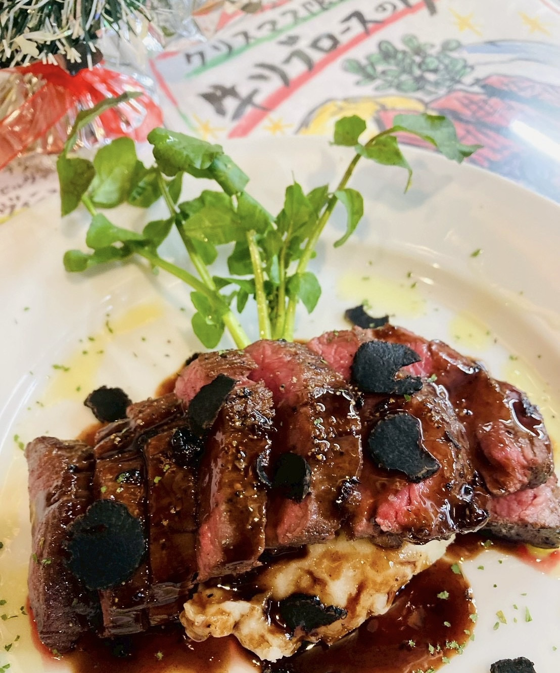 【牛リブロースのグリル ~黒トリュフと赤ワインのソース~ ¥2,080】
